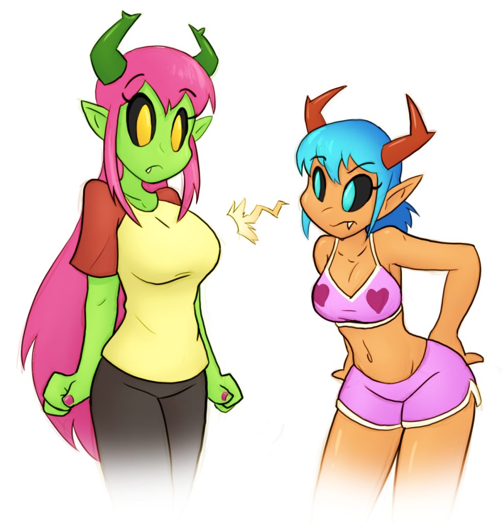 A very, very late birthday gift for ktullanyx, featuring two of her demon cuties, Vera and Amzy (in worksafe contexts this time around). Sorry this took a while, but it was hella fun drawing these two! Hope you like it, Toast!