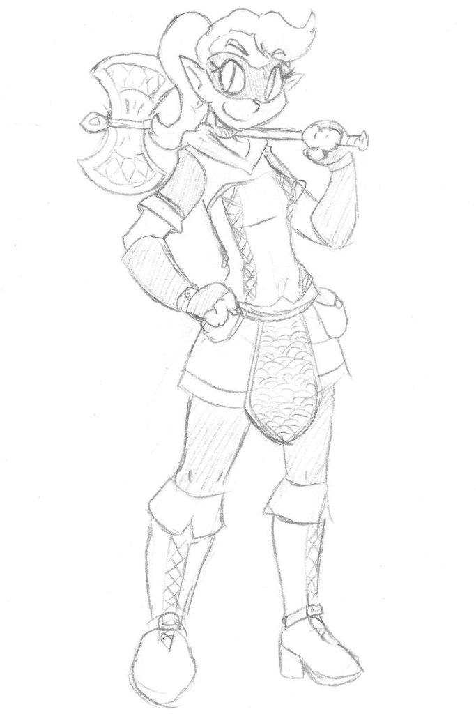 Been listening to a lot of Fantasy Fiction lately, so inspired by that, here’s a feisty elven rogue with a big axe!