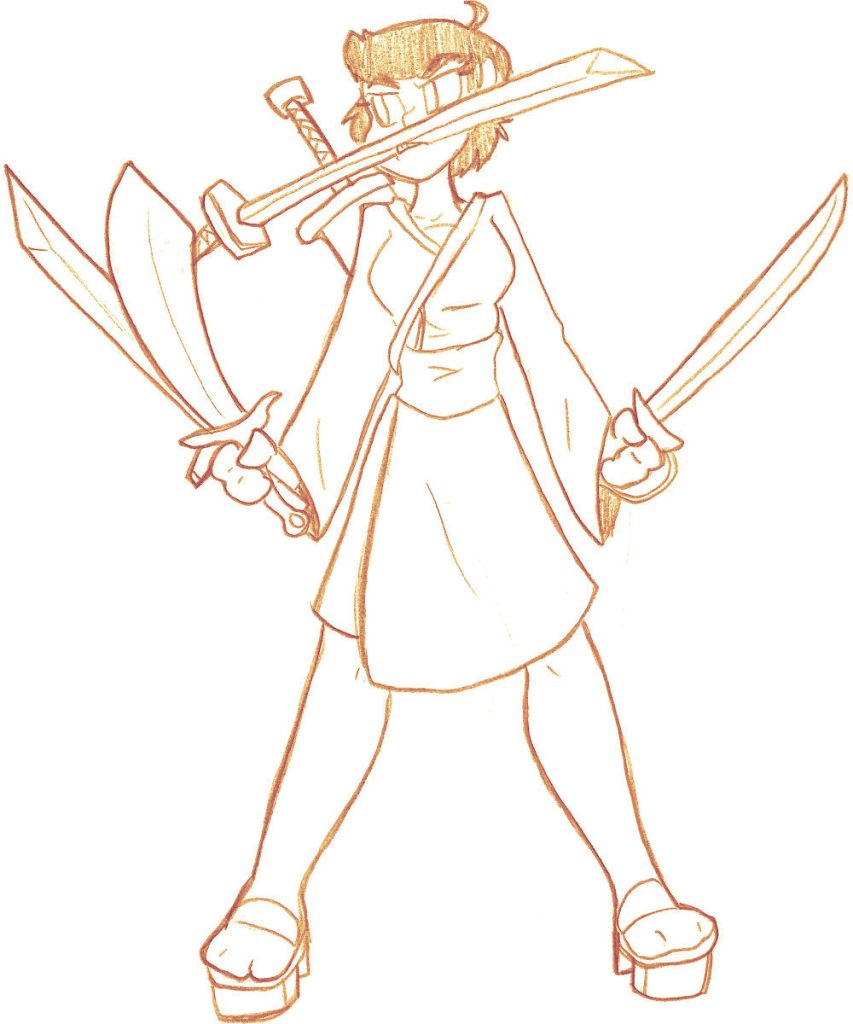 Today’s art prompt, “Too many swords”, was provided by Sam over at ko-fi. Thank you!