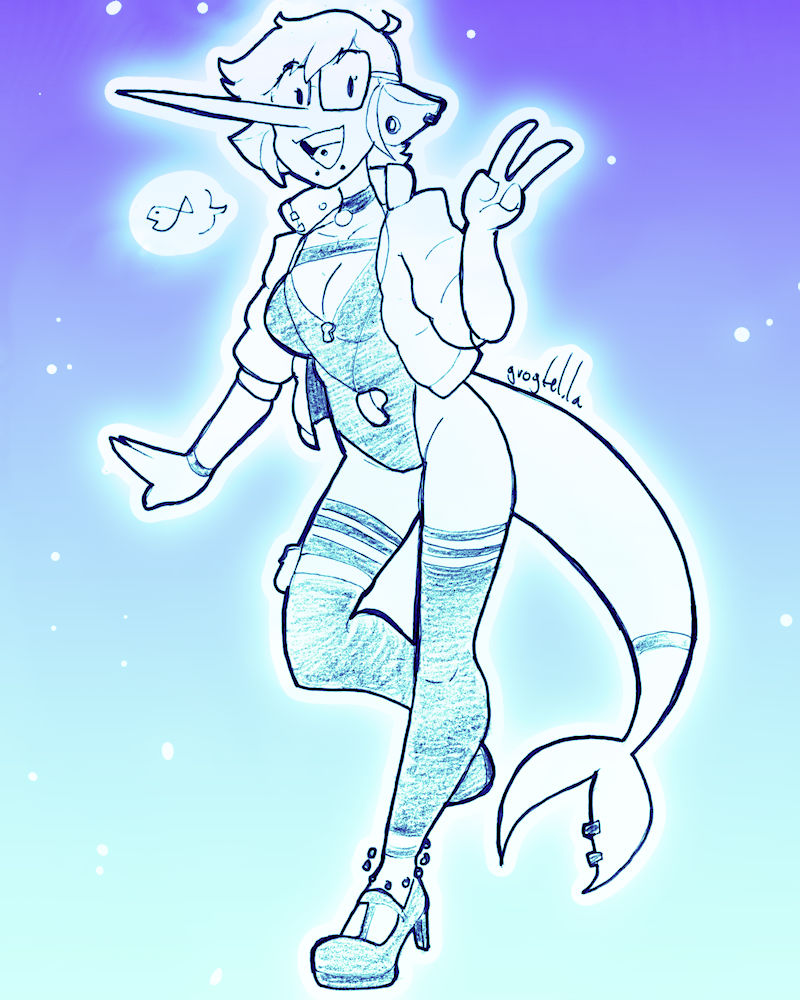 A little birthday doodle for Lobsteritus, featuring their fish gal Periwinkle. Have a good one today!