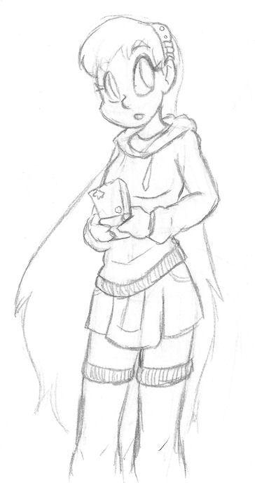 Shown here playing a quick game of Warioware while she’s waiting in line for lunch. Or something.