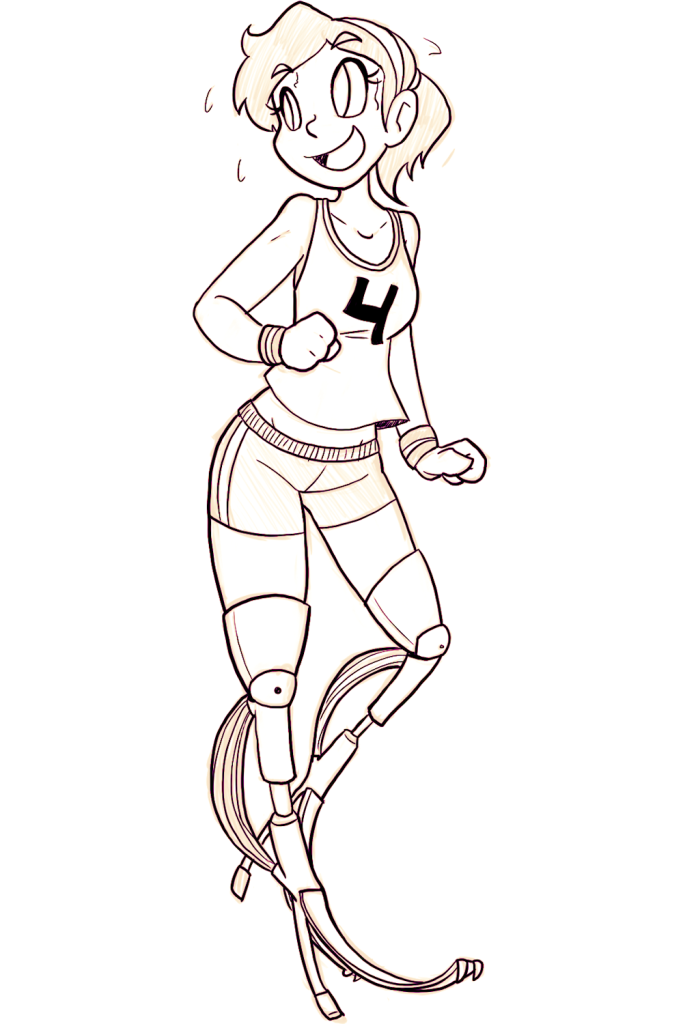 I took some suggestions for drawing prompts on Twitter and atapi suggested prosthetic legs, and I was really into that idea because I’ve wanted to do more stuff with transhumanist elements and prosthetics with the goal of improving quality of life in some character designs before, so I gave it a shot.