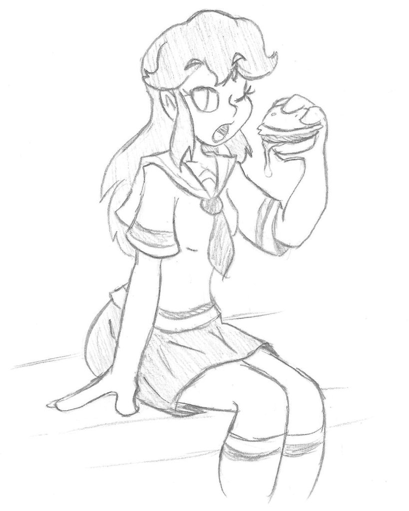 Took another round of art prompts on Twitter, and essustra suggested a cute babe eating a nice burger. Couldn’t refuse a suggestion like that.