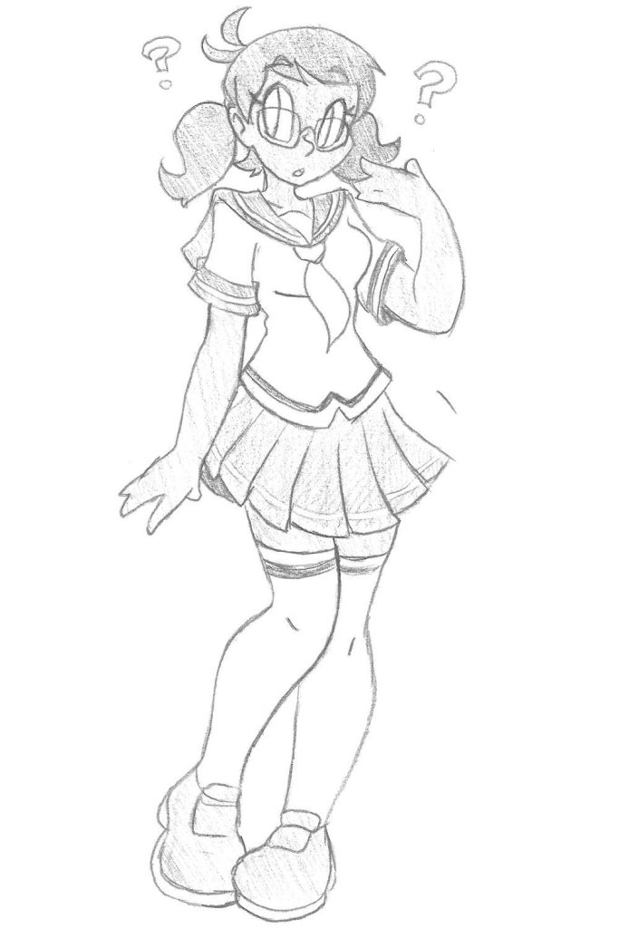 I really liked the thing I had going with that magical girl stuff so I wanna keep at it and turn it into a show-within-a-show kinda thing, starting with Magical Heart herself. Her thing is that she’s generally pretty meek at school, but when she transforms she gains the courage to stand up against injustice and fight for the good of mankind. Her hair also gets crazy long and changes color, and she loses the glasses.