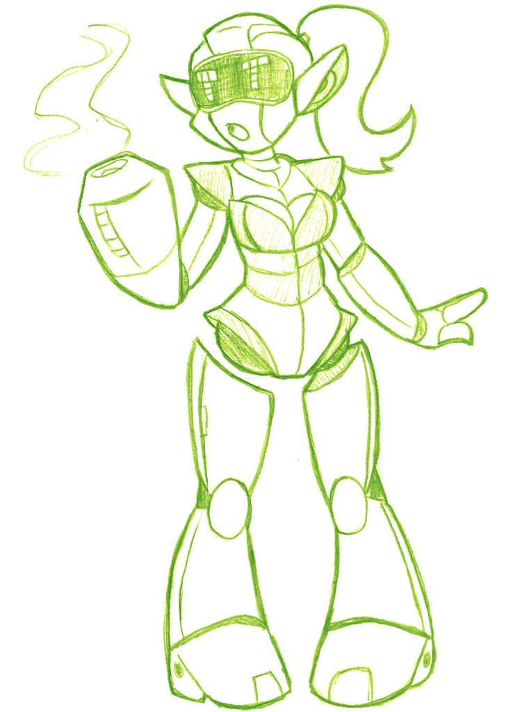 Another art prompt: @rocketverliden asked for some robots, so I basically wound up drawing a girl version of Mega Man. Oops.
