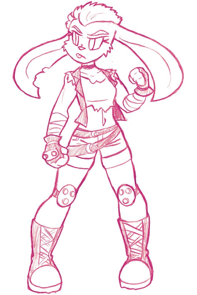 Today’s art prompt was provided by Sam, who asked for a tough fighter bunny lady. If you’d like to provide a prompt for me to draw, throw a couple bucks into my tip jar!