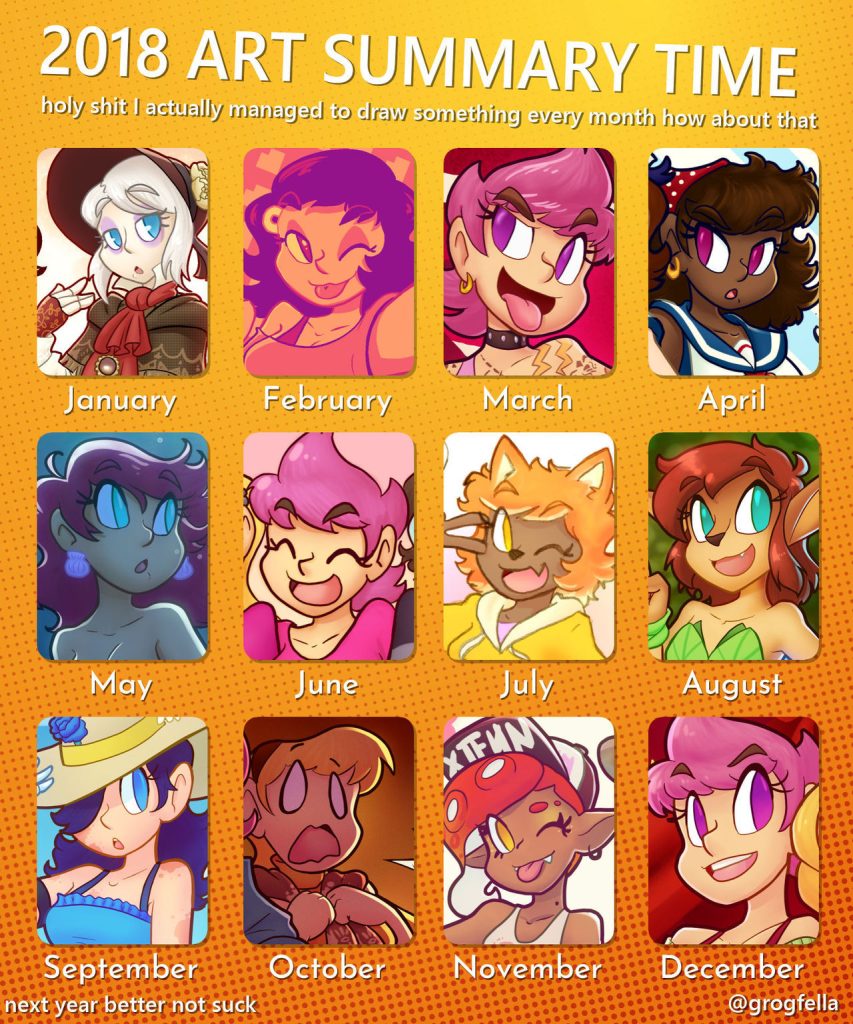 Time for the obligatory 2018 art summary, AKA almost every single colored drawing I did this year.