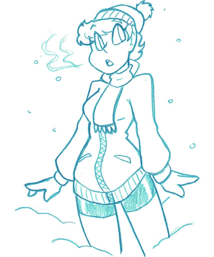 For today’s Patreon prompt, Michael suggested “winter coats and barefoot”. For your generous patreonage, I figured I might as well upgrade all the way to bare-legged.
